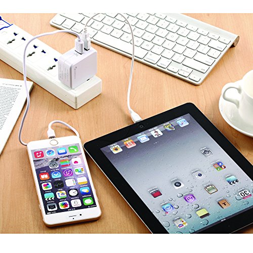 Highest Power, multiple protection, safe and high efficiency - 20watts with 4.0Amps through two ports lets you charge any combination of phones, tablets or other USB-charged devices simultaneously. Fire-resistant and hardened plastic outer shell for durability, build-in premium circuitry and microchip ensure device safety.