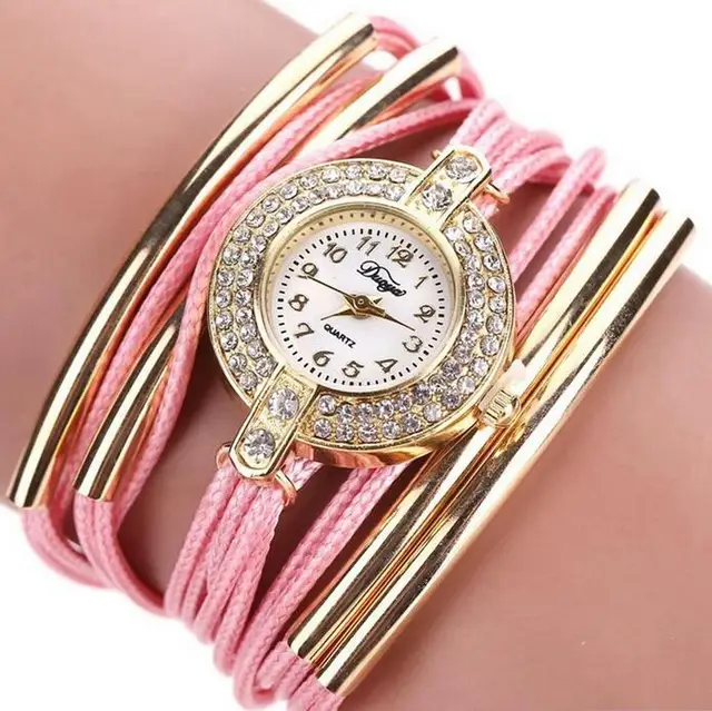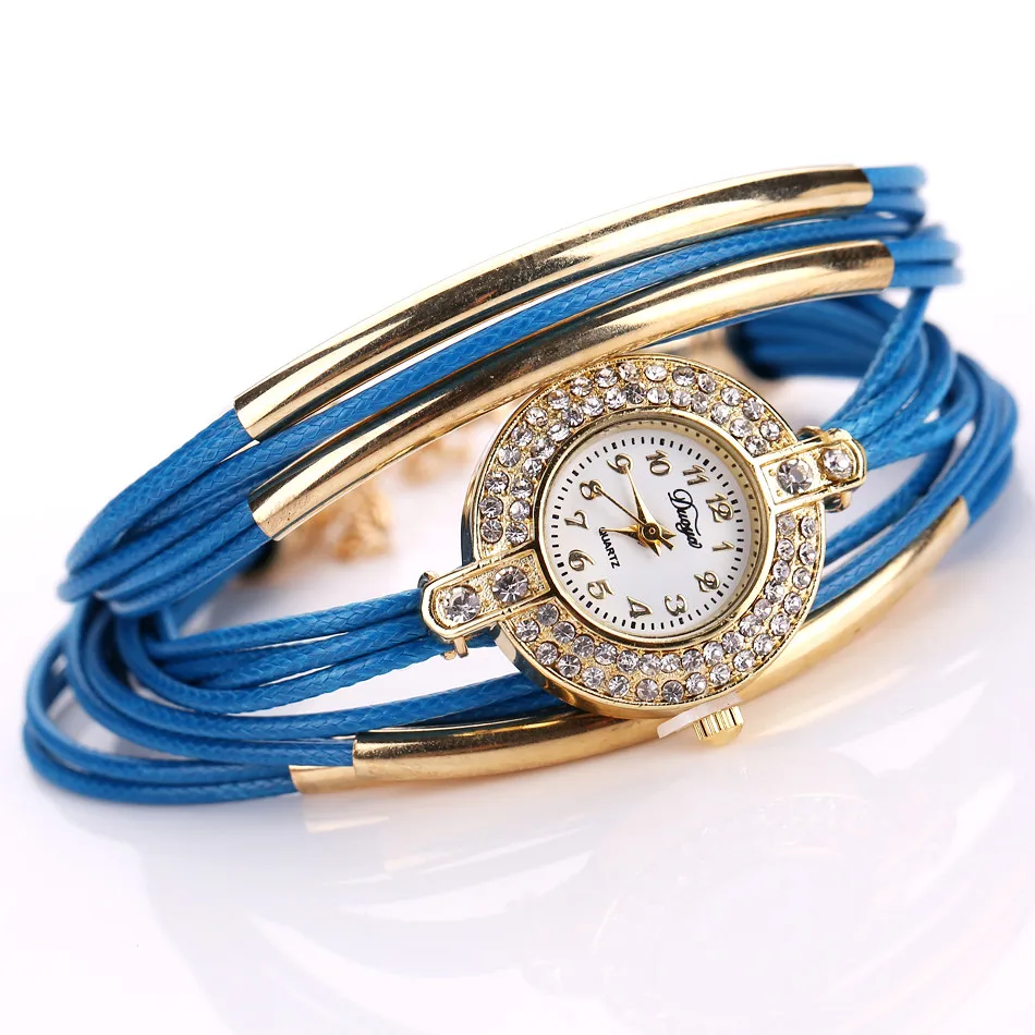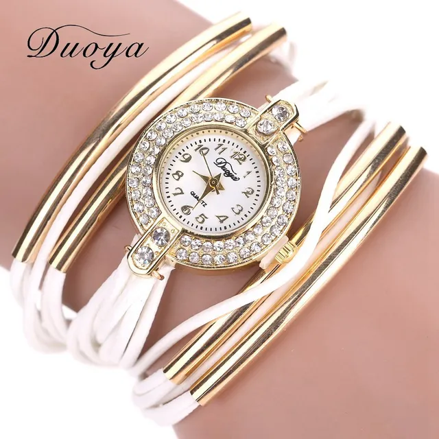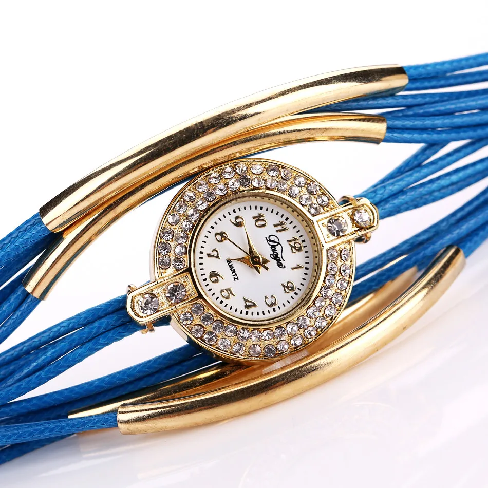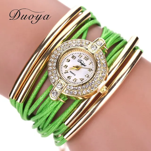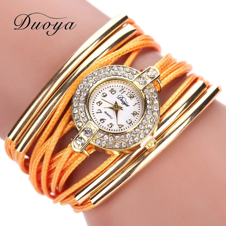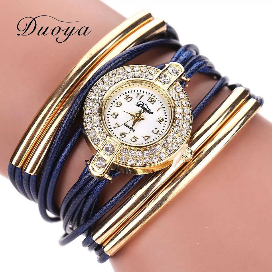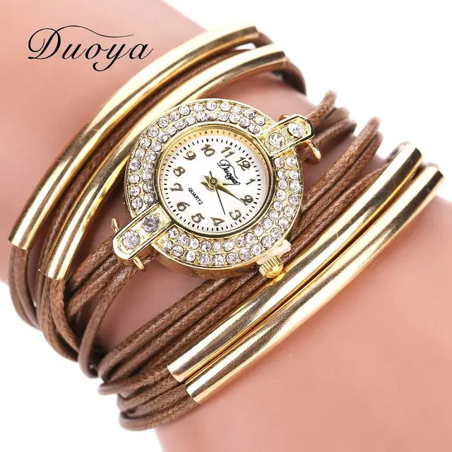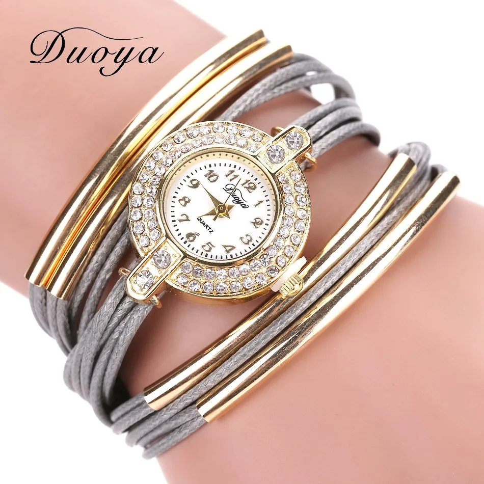 | [해외] Duoya 브랜드 고급 새로운 가죽 캐주얼 빈티지 크리스탈 석영 손목 시계 드레스 팔찌 시계 패션 여성 골드 클래식 시계 |