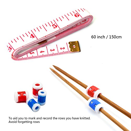 - √ Tape Measure:(width0.5 inch x long59 inch)1pieces.This flexible tape measure is perfect for measuring curved or flat surfaces.Marker Row Counter:(.0.87inch x 0.63 inch)1pieces.Allows you to track row,stitch and pattern counts - Helps you through any project.