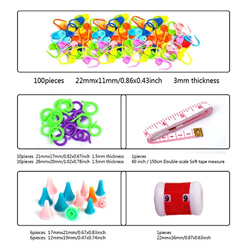 - √ Knitting crochet locking:120 pieces the size of stitch marker is approx.(100 pieces;22 x 11 mm/ 0.86 x 0.43 inch.3mm thickness);(10 pieces;21 x 17mm/ 0.82 x 0.67 inch.1.5mm thickness);(10 pieces;26 x 20mm/ 1.02 x 0.78 inch.1.5mm thickness).Crochet stitch needle colors: stitch needle clip comes in eight bright colors of red, purple, orange, yellow, light blue, green, rose red, Pink;(Color Ship Randomly).