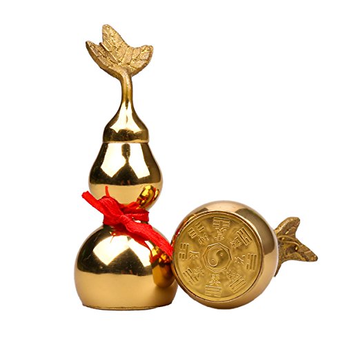Traditional chinese Brass gourd/Chinese Good Luck Wu Lou/ Hu Lu Gourd/Cucurbit for Wealth Peaceful Copper Statue (gourd4)