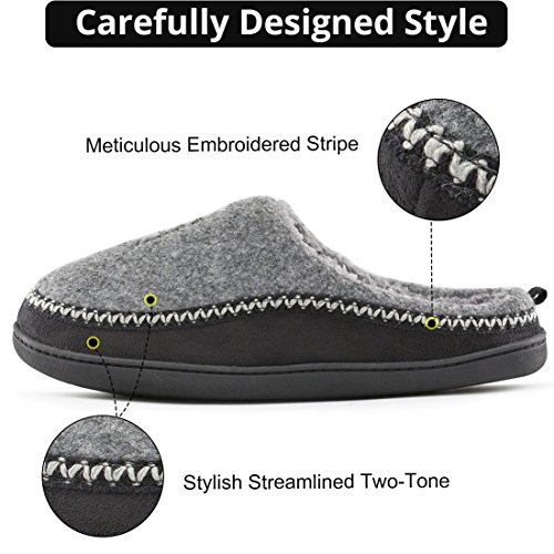 Comfort with style and durability describes these Wool Cross Decor Slip On Memory Foam Clog Slippers. There's no place like HomeTop for your slipper needs. Features: - Thick breathable wool uppers provide ultimate warmth and comfort. - Soft plush fleece lining wicks moisture to keep feet dry and comfortable. - Multilayer memory foam insole provide cushioning and shock absorption for ultimate comfort . - Versatile, sturdy sole is durable slip resistant for use inside or outside the home. - Easily cleanable by hand or machine washing (with like colors in cold water) followed by air or line drying. Sizing Guide: 40-41 | US Men's 7-8 | Length: 9.8" 42-43 | US Men's 9-10 | Length: 10.6" 44-45 | US Men's 11-12 | Length: 11.5" 46-47 | US Men's 13-14 | Length: 12.3" Tips: - For these slippers order your standard shoe size. - Get 0.5 size up if you are between sizes (eg, if you are 9.5 then order size 10), or if you have slightly higher arching feet. - If you find loose threads, do not pull. Cut with scissors. - With HomeTop, you're taking no risk with your purchase. We offer a 100% no risk money-back guarantee. 0 |