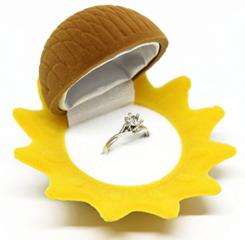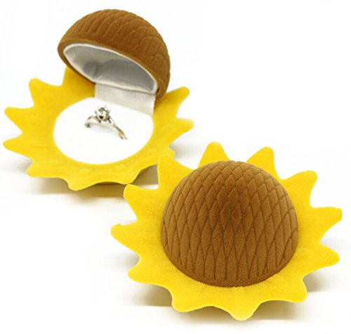 KINGWEDDING Sunflower Shaped Velvet Rings Gifts Box Jewelry Display Case