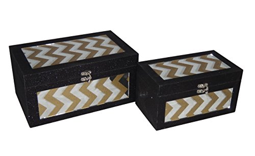 Cheung's FP-4057-2BKG Chevron Pattern Glitter Wooden Boxes with Front and Top Mirror| Set of 2| Black