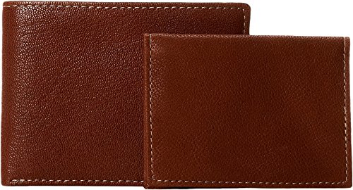 -. Feature : Pebbled-leather bifold wallet featuring removable pass case, contrast stitching, and embossed logo at front corner