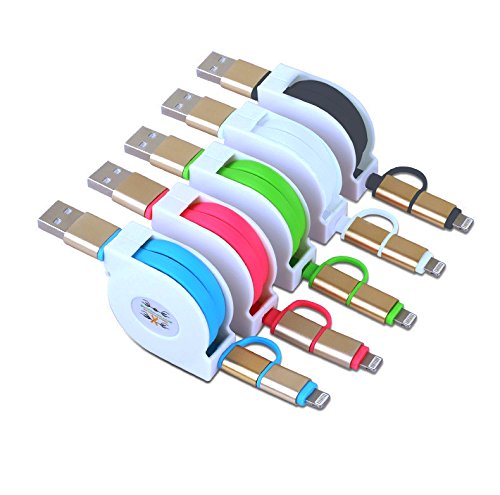 5Pack 1M 3FT 2in1 Universal Android iOS Retractable Lightning to USB Cable Power Charging Cord For iPhone 6s 6sPlus 6 6Plus 5 5s iPad iPod Samsung HTC Nexus Nokia Sony