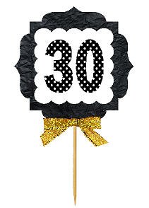 30th Birthday / Anniversary Gold Ribbon Hand Crafted Novelty Cupcake Decoration Toppers / Picks -12ct