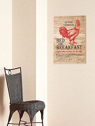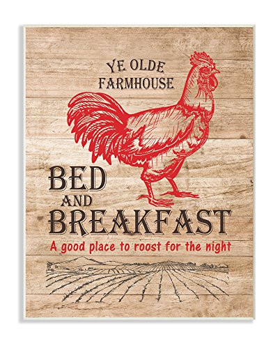 Stupell Home Décor Bed And Breakfast Red Rooster Vintage Sign Wall Plaque Art, 10 x 0.5 x 15, Proudly Made in USA