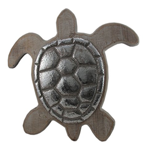 Wood & Metal Wall Sculptures Rustic Wood And Metal Sea Turtle Wall Hanging 22.75 X 22 X 0.75 Inches Silver