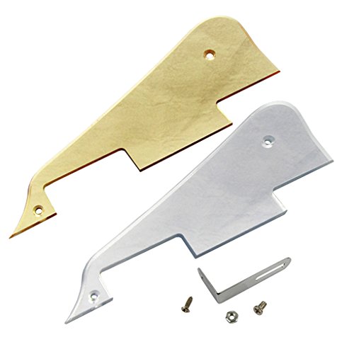 Product Description Feature:* Fits for Les Paul Style LP Style guitar pickguard replacement (We have shown the dimensions for reference.).* All materials are environmentally friendly, thermostability, no smell. Multi-layer plates are pressed under high temperature and pressures, to make them close integration between each layer, will not appear curly, deformation, or separation of different layers.* Excellent product process ensure the edge of the smooth and structured.* There is an original protective film on the surface of pickguard, it will become very smooth after you tear off the protective film.Specification:* Item: LP style guitar pickguard Bracket* Material: Pickguard is made of 1Ply Acrylic material.* With 2 screw holes, the two Screw Holes Distance: about 137mm.* Color: Silver Mirror Golden Mirror.* With protective film on the surface, while using please split it off.* Note:Item's color might be different from the picture because of the aberration.Package Includes:2 x Pickguards2 x Silver Brackets 0