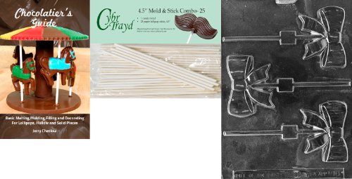 Cybrtrayd 'Ribbon Pop' Miscellaneous Chocolate Candy Mold with 25 4.5-Inch Lollipop Sticks and Chocolatier's Guide