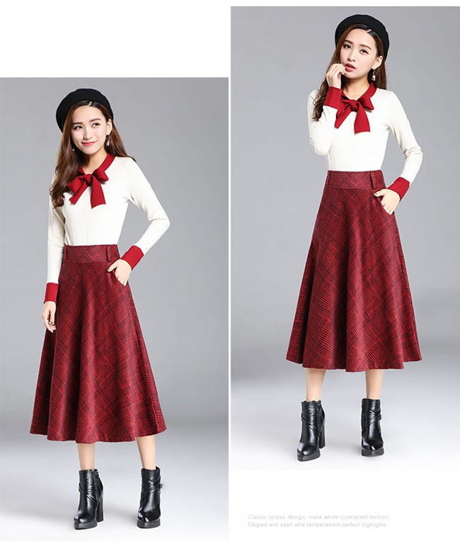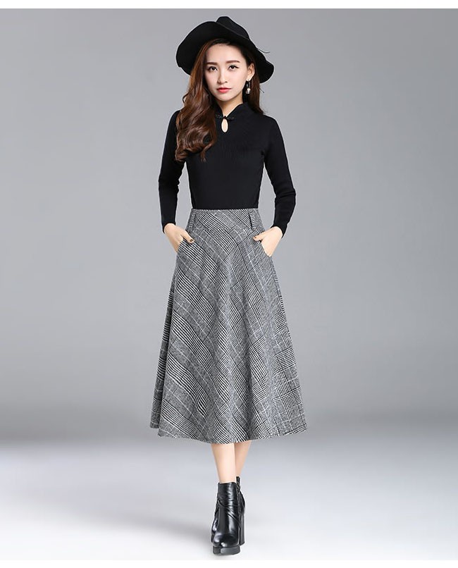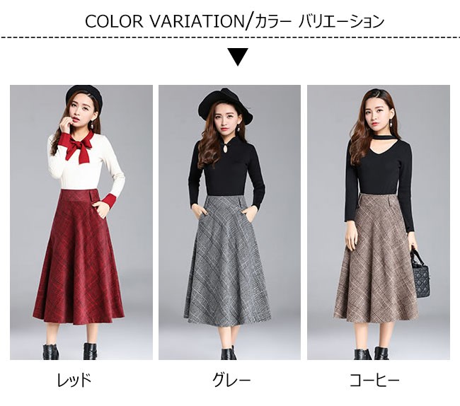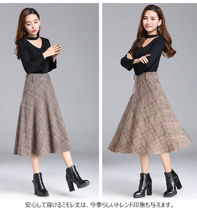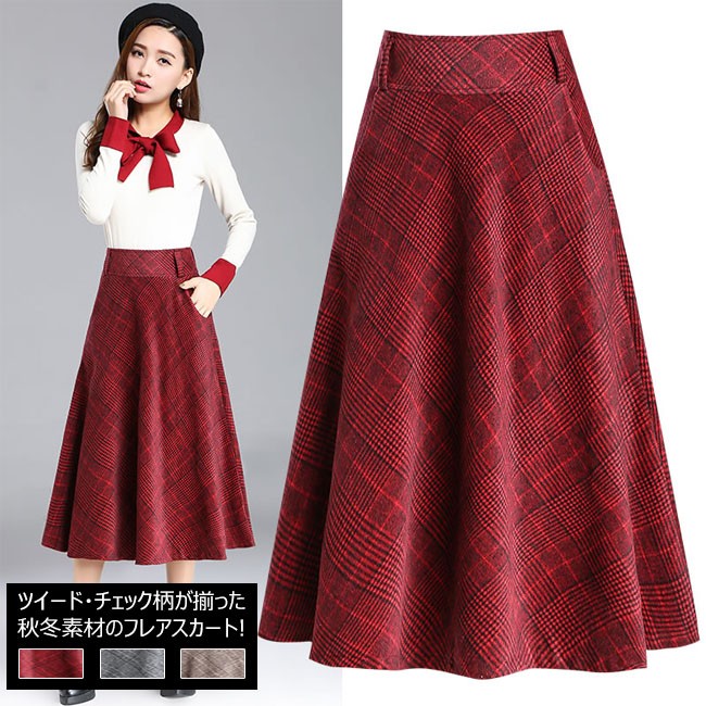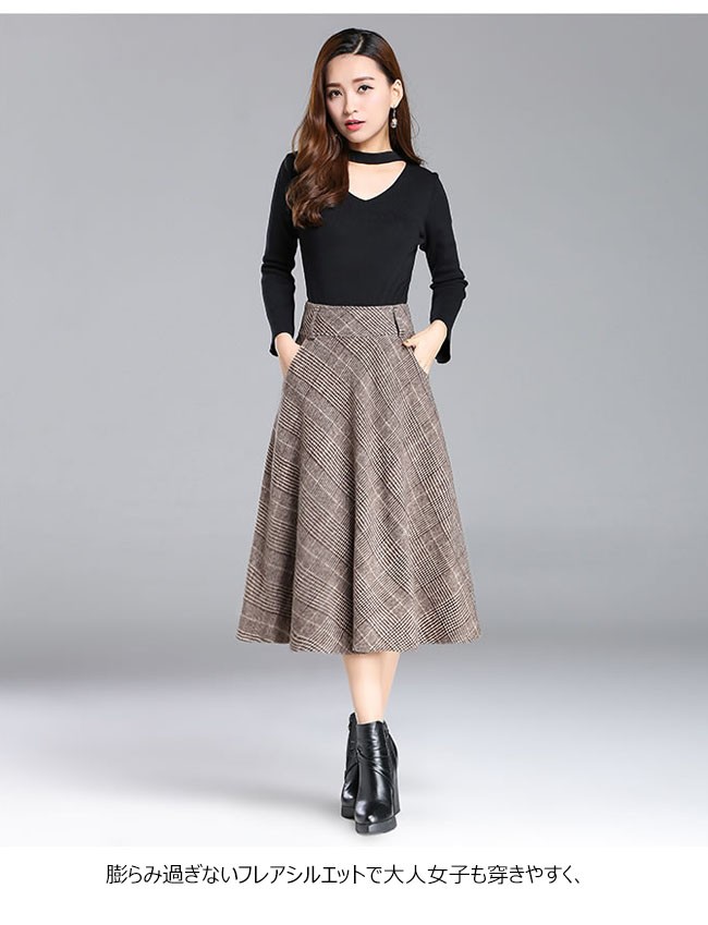 | 商品名 | フレアスカート ミモレ丈 スカート グレンチェック ロング ファスナー付き レディース ボトムス チェック柄 ツイード ハイウェスト Aライン 2017秋冬新作 |