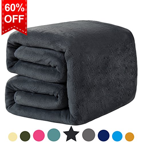 Fleece Queen Blanket Super Soft Warm Extra Silky Lightweight Bed Blanket, Couch Blanket, Travelling and Camping Blanket (Dark Grey)