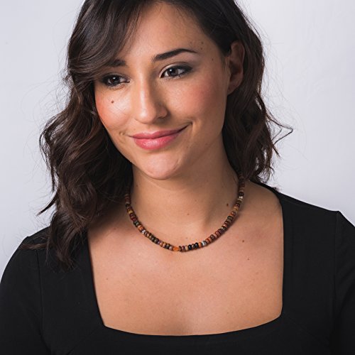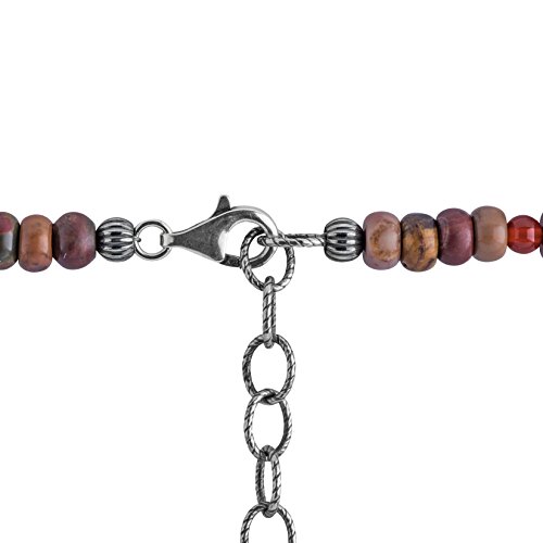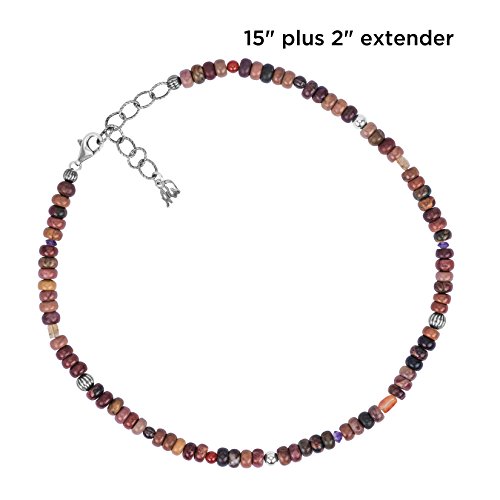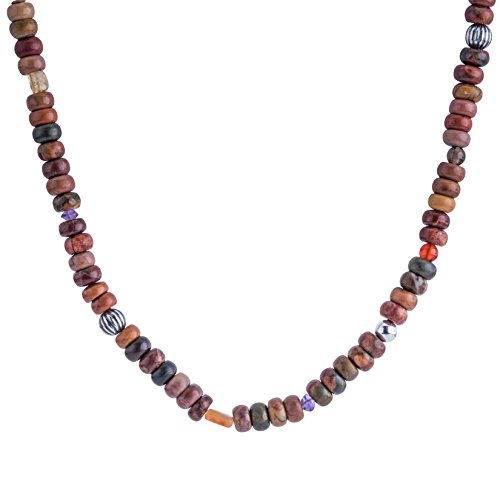 Cue the color with this southwestern star, this necklace is beaulitfully accented with various hues of brown gemstone beads in various shapes and sizes with stamped sterling silver bead accents.