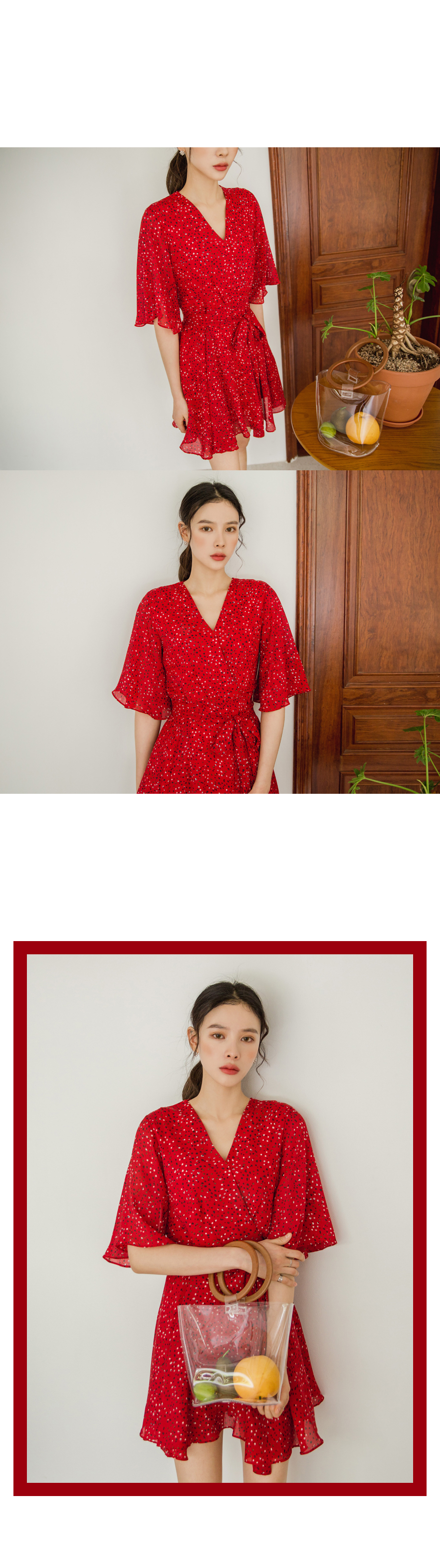 MD COMMENT플라워 패턴으로 걸리시하면서도 러블리한무드의 랩 원피스입니다시선을 끄는 레드컬러 베이직한 베이지 컬러로 준비되어있어 부담없이 즐기실 수 있으세요 루즈핏 나팔소매로 군살커버는 물론! 여리여리하면서도 여성스러운 느낌이구요 탈부착 가능한 리본 매듭으로 허리라인을 한번 더 슬림하게 연출하실 수 있어요 레트로 무드 느낌으로 데일리룩,데이트룩,바캉스룩 으로 손색이 없는 아이템이에요!