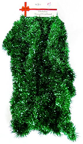 25 Ft. Long Seasonal Holiday Tinsel Garland from Love It! Products. Use for Christmas, Thanksgiving, New Years, Birthday and any celebration, party or event. Color: Green