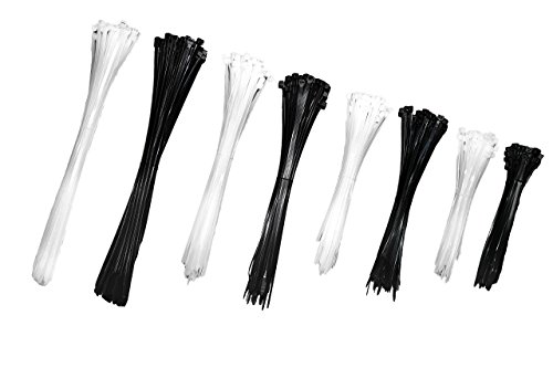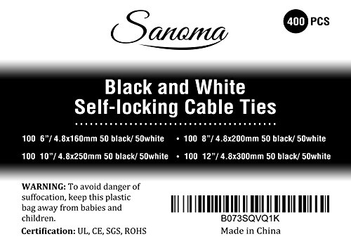 Sanoma 400 Pieces Black & White Self Locking cable ties 6,8,10,12 Inch Nylon Pack tie wraps Assortment- 50 LB Tensile strength zip ties- Nylon wire ties assortment- Cable tie bundle