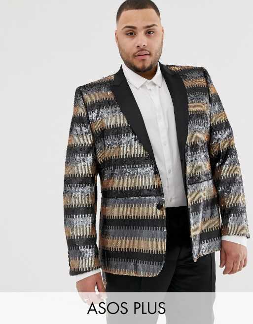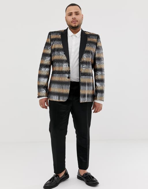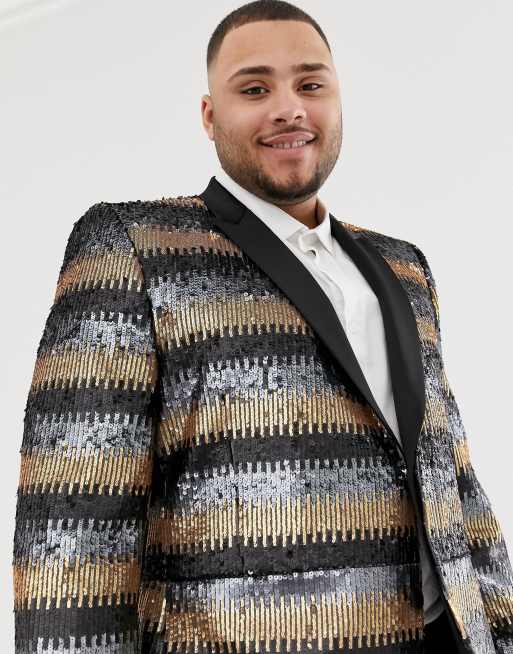 ASOS EDITION Plus skinny suit jacket in gray and gold sequins