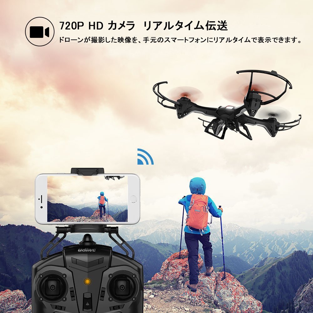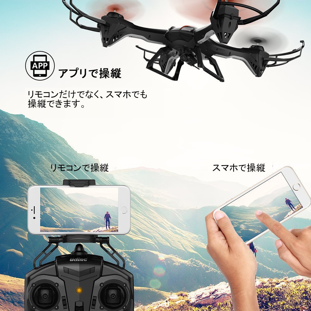 The FPV function that can display the image taken by Drone on real-time smartphone at hand is mounted.