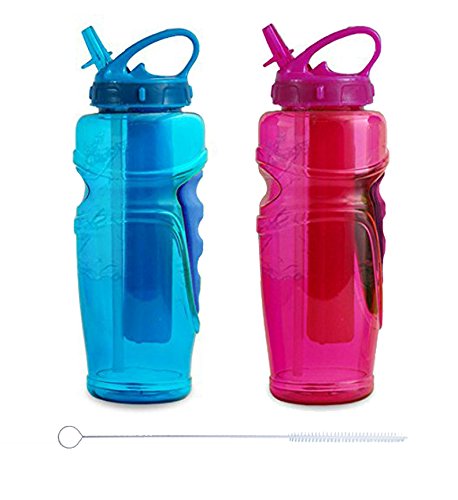 Cool Gear Ez Freeze Water Bottle, 32oz, Solstice - BPA Free - PVC Free - Phthalates Free, Includes Zippy Straw Cleaner - 2 Pack
