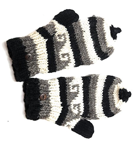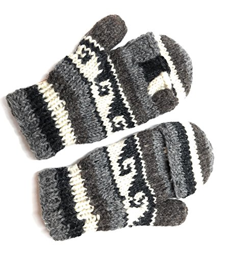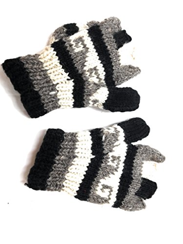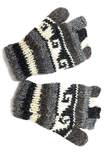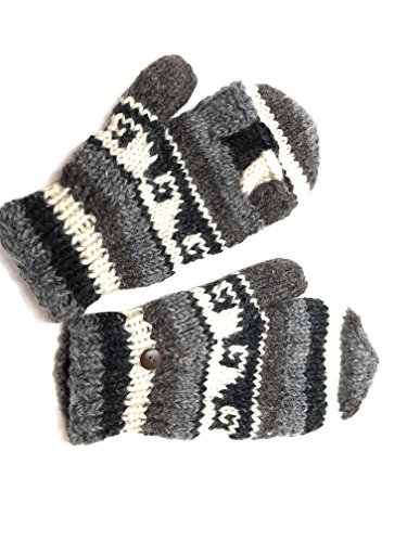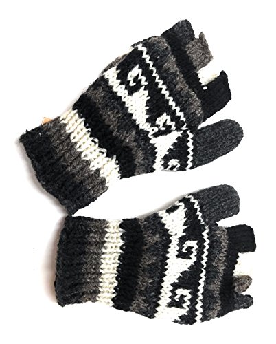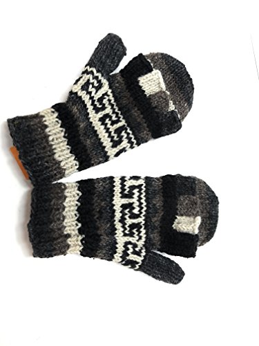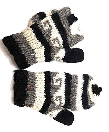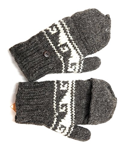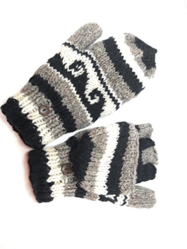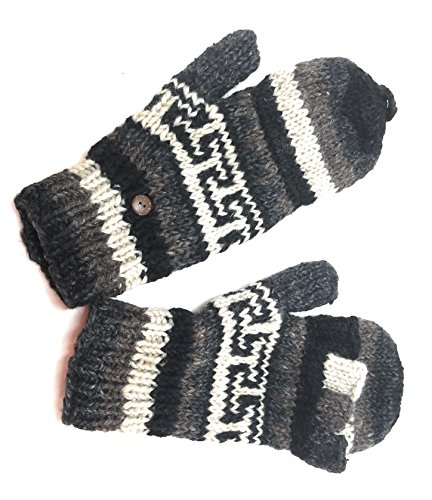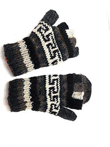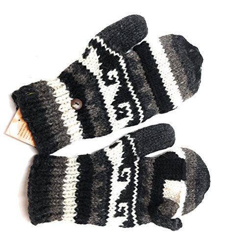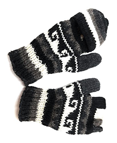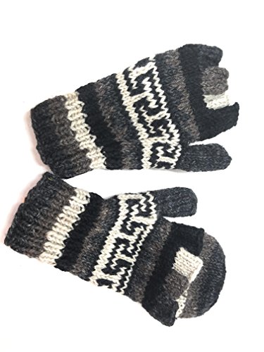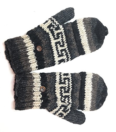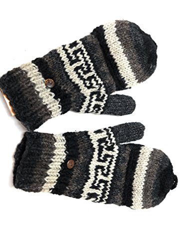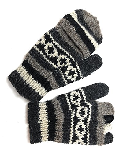 | (Himalaya Clothing)/Accessories/Cold Weather Accessories/DIRECT FROM USA/Hand Knit Wool Convertible Mittens to Fingerless Gloves Fleece Lined Made in Nepal |