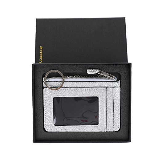 Feature 1: A RFID wallet by YKK zipper closure Feature 2: A slim wallet with a keychain design Feature 3: A front pocket wallet with a Gift Box Package Feature 4: (1)ID window,(2)credit card,(1)pocket