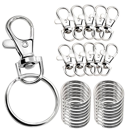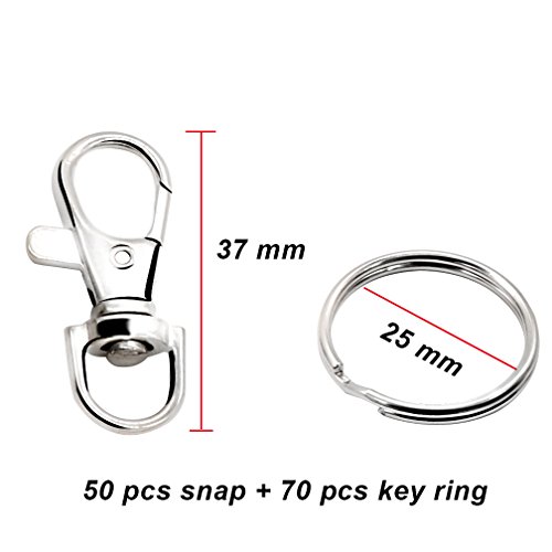 Esfun 120 PCS Metal Swivel Lobster Claw Clasp Lanyard Snap Hook with Key Chain Key Rings