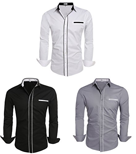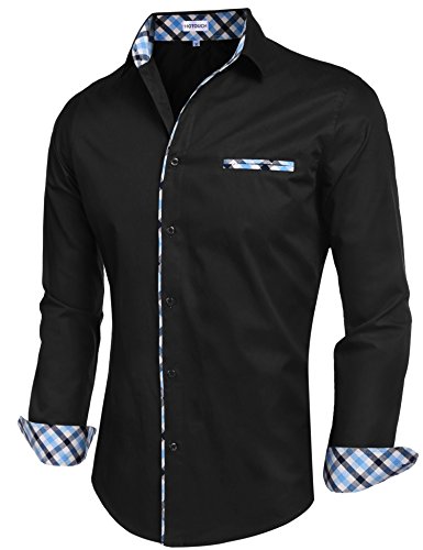-. Brand : Hotouch -. Department : mens -. Feature : Material: 95% Cotton 5% Spandex / Patchwork on collar and cuff, featuring embroidery FAKE Pocket on chest / Men button down casual dress shirts;Slim fit, suitable for casual wear. / Garment Care: Hand-wash, Machine Wash Cold, Hang Dry / Please use our SIZE CHART in the following the Product Description. -. Model : AMJ004983 -. ProductGroup : Apparel -. ProductTypeName : APPAREL -. Title : HOTOUCH Mens Slim Fit Long Sleeve Casual Button Down Shirts