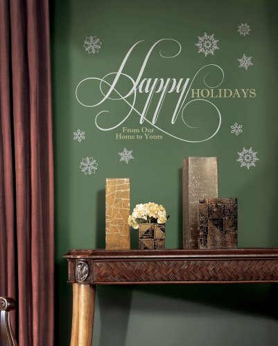 RoomMates RMK2462GM Happy Holidays Quote with Glitter Peel and Stick Giant Wall Decals, 1-Pack