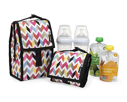 [Description] Gel-lined walls protect and chill two 10 oz bottles of milk_ juice or water for up to 6 hours (depending on external temperatures Folds flat and freezes overnight (12 hours Zip closure locks cold_ dry air inside baby lunch bag Buckle handle clips onto diaper bags and strollers Iceless cooler made from food-safe_ nontoxic poly canvas and waterproof EVA PackIt``s patented built in freezable gel-lined walls keep food and beverages cold for hours. No extra ice packs to lose or forget in the freezer! To use: fold PackIt``s Freezable Baby Bottle Bag flat and store it in the freezer overnight (12 hours). The next morning_ the bag will be fully frozen and ready to use! The top of the baby bottle bag features a zip closure to lock in cool_ dry air. A buckle handle clips onto totes_ backpacks_ diaper bags and strollers Two Bottle Capacity: this freezable baby bottle bag is ideal for toting two baby bottles or juice_ squeezable baby food pouches and more This soft sided Bottle Bag is made from nontoxic poly canvas and has a food-safe_ water-resistant lining. Like all PackIt products_ the Baby Bottle Bag is made from PVC-_ BPA-_ phthalate-_ formaldehyde- and lead-free materials Proudly made by PackIt: creator of the ORIGINAL foldable_ freezable lunch bag. Designed in California