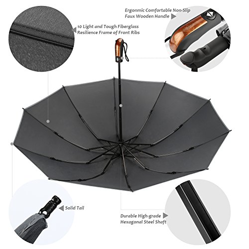 -. Binding : Misc. -. Brand : Feagar -. Feature : WINDPROOF 10 RIBS CONSTRUCTION-Feagar Umbrella is fortified with 10 reinforced fiberglass ribs that withstand strong wind without turning inside out. Feagar umbrella can protect you from rains and winds to 60MPH. / SUPERIOR WATER-REPELLENT-Premium waterproof coating technology. The Feagar Umbrella can bring you high water-repellent performance. / AUTOMATIC- Auto open/close function allows for easy one-handed operation. / QUALITY WORKMANSHIP - Designed with a three-fold chrome plated metal shaft, and strong metal frame brings great stability in high winds. The ergonomic, slip-proof. A protective travel sleeve is included. / LIFETIME GUARANTEE-If you ever experience any quality issue with Feagar umbrella, then we could replace it with a new one. -. IsAutographed : 0 -. IsMemorabilia : 0 -. Label : Feagar -. Manufacturer : Feagar -. ProductGroup : Sports -. ProductTypeName : SPORTING_GOODS -. Publisher : Feagar -. Studio : Feagar -. Title : Umbrella Windproof 10 Ribs Large Travel Umbrellas Auto Open&Close Umbrella for Rain by Feagar