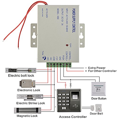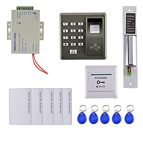 -. Feature : Complete access control system Kits Set, includes a FingerP.R.Int RFID access control keypad, a power supply, an electric door lock, an exit button, a doorbell and 5 Pieces Keyfobs and RFID Card. / The access control system can provide users with more convenience by connecting to terminals, including the button for opening the door, doorbell, and electric lock that is normally open or closed. / Support 500 card capacity and fingerP.R.Int capacity, less than 1 second user recognition. / It can operate on standalone mode with the interface for third party electric lock, exit button, door sensor, alarm and bell. / The advanced access control system can improve the safety of your home and office .It is perfect for businesses, offices, factories, and communities.
