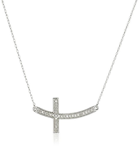 -. Binding : Jewelry -. Brand : Amazon Collection -. Color : White -. Department : womens -. Feature : Single cut: Diamonds consist of fewer than 17 facets / Imported / Carat weight listed is the total for all stones. / All our diamond suppliers confirm that they comply with the Kimberley Process to ensure that their diamonds are conflict free -. Label : Amazon Collection -. Manufacturer : Amazon Collection -. Model : 2439620100W -. MPN : 2439620100W -. PackageQuantity : 1 -. PartNumber : 2439620100W -. ProductGroup : Jewelry -. ProductTypeName : FINENECKLACEBRACELETANKLET -. Publisher : Amazon Collection -. Studio : Amazon Collection -. Title : 10k White Gold Diamond Sideways Cross Pendant Necklace (1/10cttw, I-J Color, I2-I3 Clarity), 17"