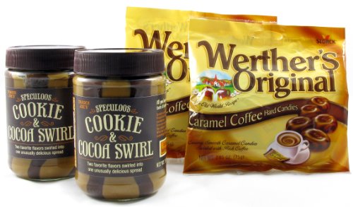 -. Title : Set of 2 Trader Joe's Speculoos Cookie and Cocoa Swirl + 2 Bags Werther's Original Caramel Coffee Hard Candies - 4 Items Total