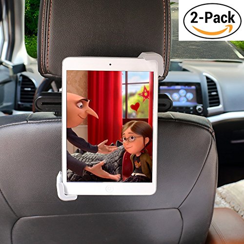 -. Feature : UNIVERSAL CAR TABLET HOLDER - The iPad car holder works well with all 7 - 10.1 inch tablets. Compatible with Apple iPad 2/iPad 3/iPad 4/iPad Air/iPad Mini/iPad Mini2/iPad Mini3/Galaxy Note 10.1 and many more. / FULL 360-DEGREE ADJUSTABLE ROTATION - The car iPad stand supports you to adjust the viewing angle freely, offering you a perfect customized view of watching movies, playing games and so on. / HASSLE-FREE INSTALLATION - The installation requires no suction cups, screws, adhesives or glue. Simply clamp your tablet stand on the car headrest and it's ready to work! Tablets can be attached or released quickly and easily without using any tools. / ENHANCED SECURITY - The extendable arms securely hold your tablet and the silicone pads prevent your pad from slipping. This design makes your device stable even while driving on bumpy roads. / GREAT CAR COMPANION - Best headrest mounting solution for tablet PCs; frees your hands from your devices; allows you to comfortably enjoy your favorite music or films during car trips.