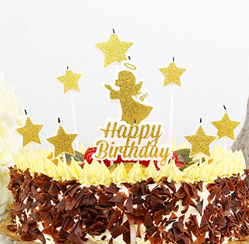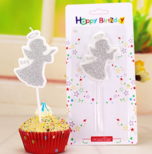 Creationtop Birthday Candles Newborns, 1st Birthday,Wedding Love Candles for Cake (Silver Angel Boy)