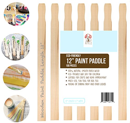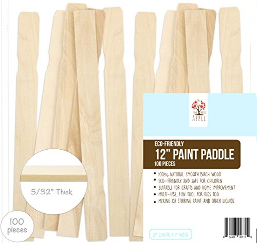 Wooden Paint Paddle Stir Sticks 12" Bulk of 100pc, For Mixing Paint & other liquids, Use for Art project & Home Improvement, Garden, Library Marker & Kids Activity DIY Wood Craft Sticks (Pack of 100)