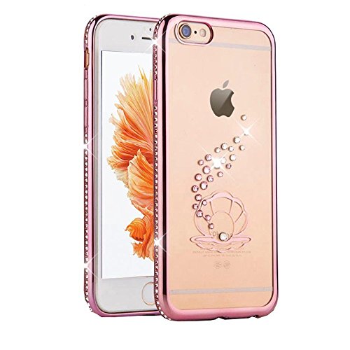 iPhone 6S Plus Case, CaseUp Glitter Butterfly Floral Series - [Electroplate Bumper] Slim Luxury Bling Rhinestone Clear TPU Case Cover For iPhone 6S Plus/ 6 Plus (5.5 Inch) Rose Gold