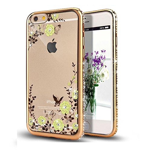 CaseUp Glitter Butterfly Floral Series - [Electroplate Bumper] Slim Luxury Bling Rhinestone Clear TPU Case Cover For iPhone 6S Plus / iPhone 6 Plus (5.5 Inch)