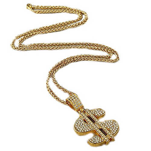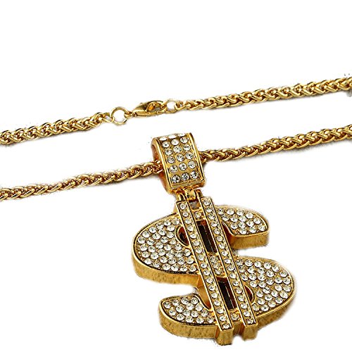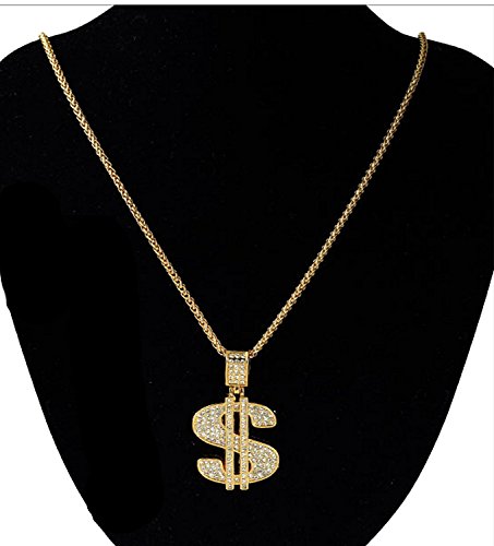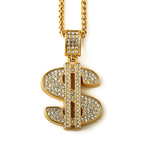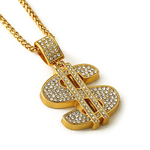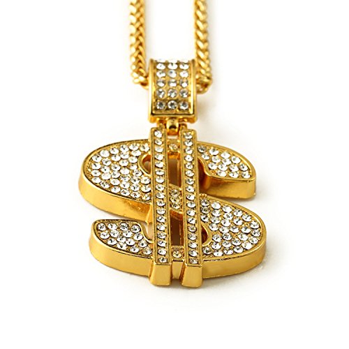 Iced Out "Big Money Sign" 14K Hip Hop Gold Plate Jewelry, Bling Bling Necklace 30"Rope Chain Included