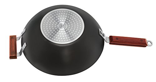• Double thickness base, stays flat, spreads heat more evenly, suitable for Induction, gas and electric cooktops