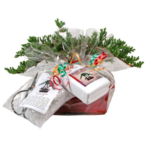 - Feature : Complete Bonsai Gift Kit Includes Fertilizer, Figurine, and Clippers, Beautifully Gift Wrapped / Japanese Juniper Bonsai Tree is approximately 6 years old, planted in 5-6 inch ceramic container / Bonsai Tree averages 9-11 inches in height with 6-8 inch spread / Perfect for patio and outdoor areas, requires bright lighting and moist watering conditions / State agricultural restrictions prohibit delivery of this tree to California or Hawaii