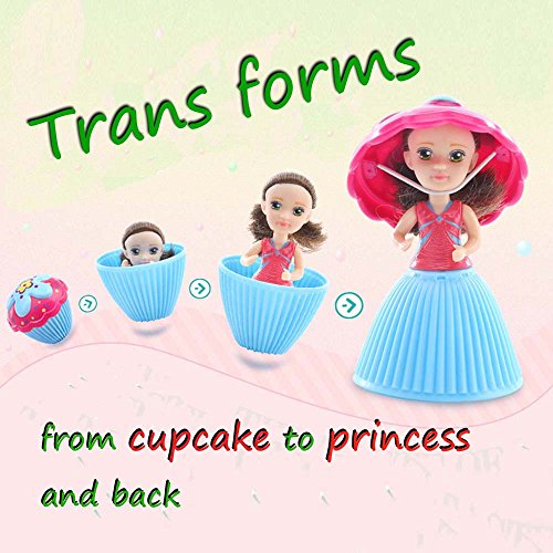 Pack: 2 pieces of mini cupmake size 5cm width x5cm height. This is a magic cupcake toys, it could transform from a cupcake to a 9cm tall beautiful long hair princess in a second!