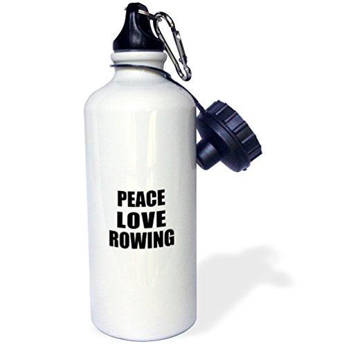 3dRose wb_184904_1 Peace Love and Rowing-Things That Make Me Happy-Rower Sport Gift Sports Water Bottle, 21 oz, White
