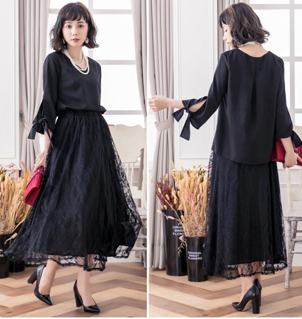 ブラウスとレーススカートのセットアップ