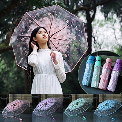 -. Brand : Outgeek -. Feature : Material: Plastic and alloy / Quality goods has bigger grid with 9 layers of silk plastic cloth and the color is brighter / Several layers of sakura pattern are more colorful than fake one / Comfortable and portable: This small umbrella folds into a compact of 22.5cm9in, making it easy to tuck into a backpack, case or tote / Umbrella ribs and tip are seamless connection which efficiently reduces rain leakage -. ProductGroup : Home Improvement -. ProductTypeName : HOME_ORGANIZERS_AND_STORAGE -. Title : Outgeek Clear Umbrella Totes Umbrella Triple Fold Sunproof Parasol Cute Umbrella