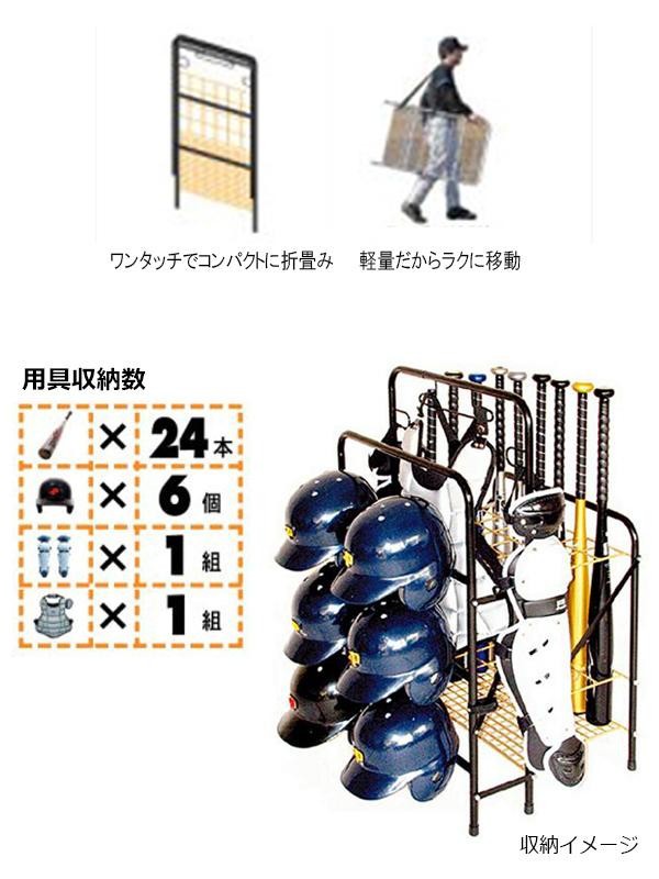 | 「楽々組立・楽々収納・楽々移動」の収納スタンドです。ネジ類一切不要で、箱から取り出し広げるだけ。今までグラウンドに直置きだった道具類も、すっきりきれいに収納できます。移動時には肩から提げて楽々移動可能!! |