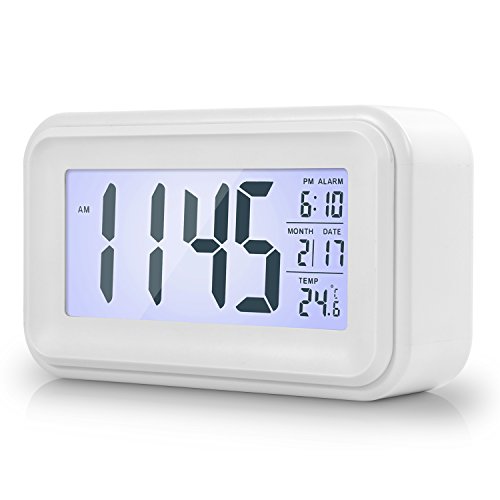 -. Title : HotTime 卓上 デジタル 目覚まし時計 スマートライト付き 大画面 カレンダー 温度表示 アラーム 12/24時間表示 めざまし時計 目覚ましどけい ホワイト