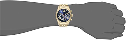 ReleaseDate : 2012-04-23 Studio : Michael Kors Watches MFG Code Publisher : Michael Kors Watches MFG Code Binding : Watch Product Description Polished gold-tone stainless steel case and bracelet. Fold-over clasp closure with push-button release. Three-hand analog display with quartz movement, three sub-dials and date display window. Chronograph functionality. Navy blue dial face features Roman numeral hour markers and split-second track at perimeter. Integrated crown protection. Water resistant 10 ATM/100 meters. Gift box included. Imported. 0