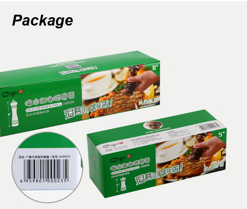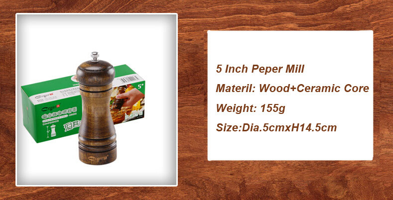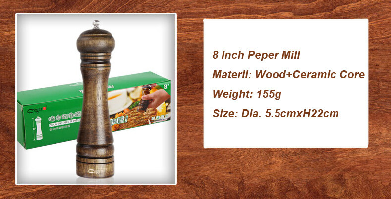 2PCS 5" and 8" Classic Style Wooden Salt and Pepper Mills Grinder Set with Ceramic Core Hand Manual Herb & Spice Tool